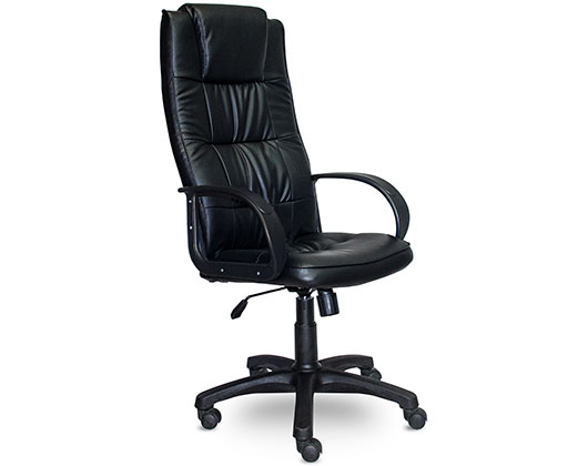 Спинка кресла декорирована стяжками, разделяющие мягкий подголовник и часть поясничной поддержки. Подлокотники оснащены мягкими накладками. Солидное кресло отлично дополнит кабинет руководителя.