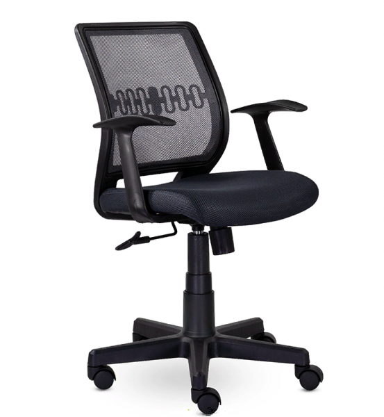 Компактное офисное кресло на колесах с сетчатой спинкой, которая обеспечивает оптимальную циркуляцию воздуха.Отделка сиденья из ткани C - 100% полиэфирная пневмотекстурированная ткань.Эргономичная спинка с сеткой TW - отделочный материал из синтетических волокон и нитей.Нерегулируемые пластиковые Т-образные подлокотники.Надежный механизм качания Топ-Ган с синхронным отклонением спинки и сидения и фиксации в рабочем положении.