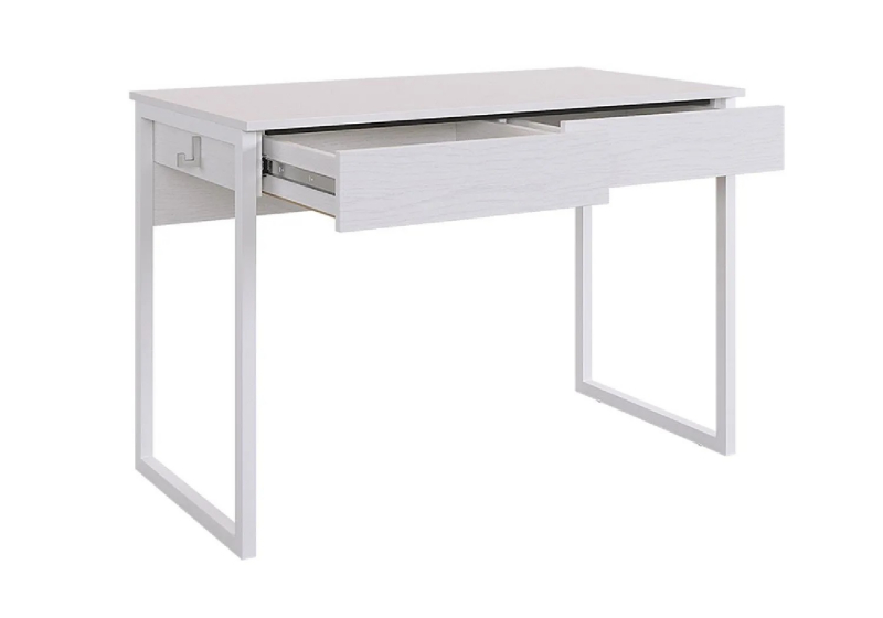 Стол оснащен столешницей на металлических опорах с двумя выкатными ящиками на шариковых направляющих. Это обеспечивает усиленный и надежный каркас, а также позволяет легко и быстро добраться до нужных вещей. Металлическое ребро жесткости под столешницей гарантирует долговечность и стабильность конструкции.