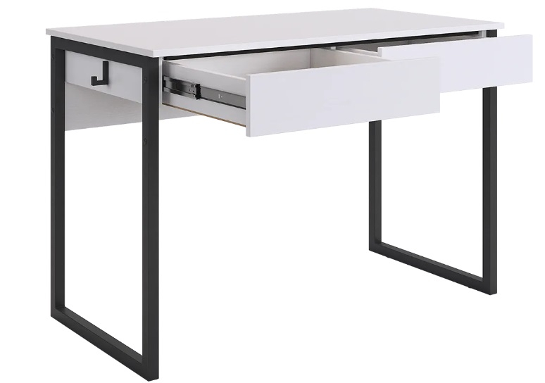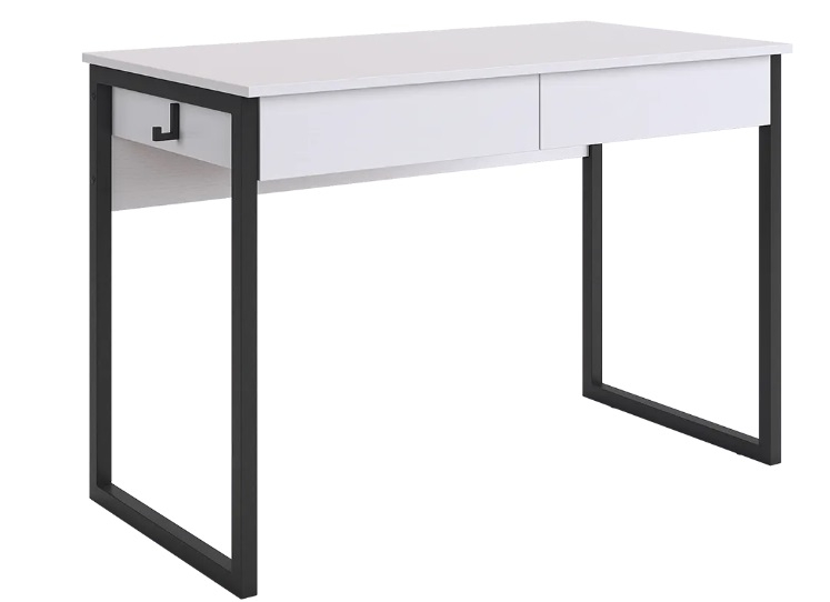 Современное решение для организации рабочего места взрослого, подростка и даже ребенка. Большой компьютерный стол на металлических опорах с двумя выкатными ящиками на шариковых направляющих, усиленный и надежный каркас, благодаря металлическому ребру жесткости под столешницей, будет стильным акцентов в комнате. Крючок на боковой стенке стола будет полезным дополнением для рюкзака или наушников.