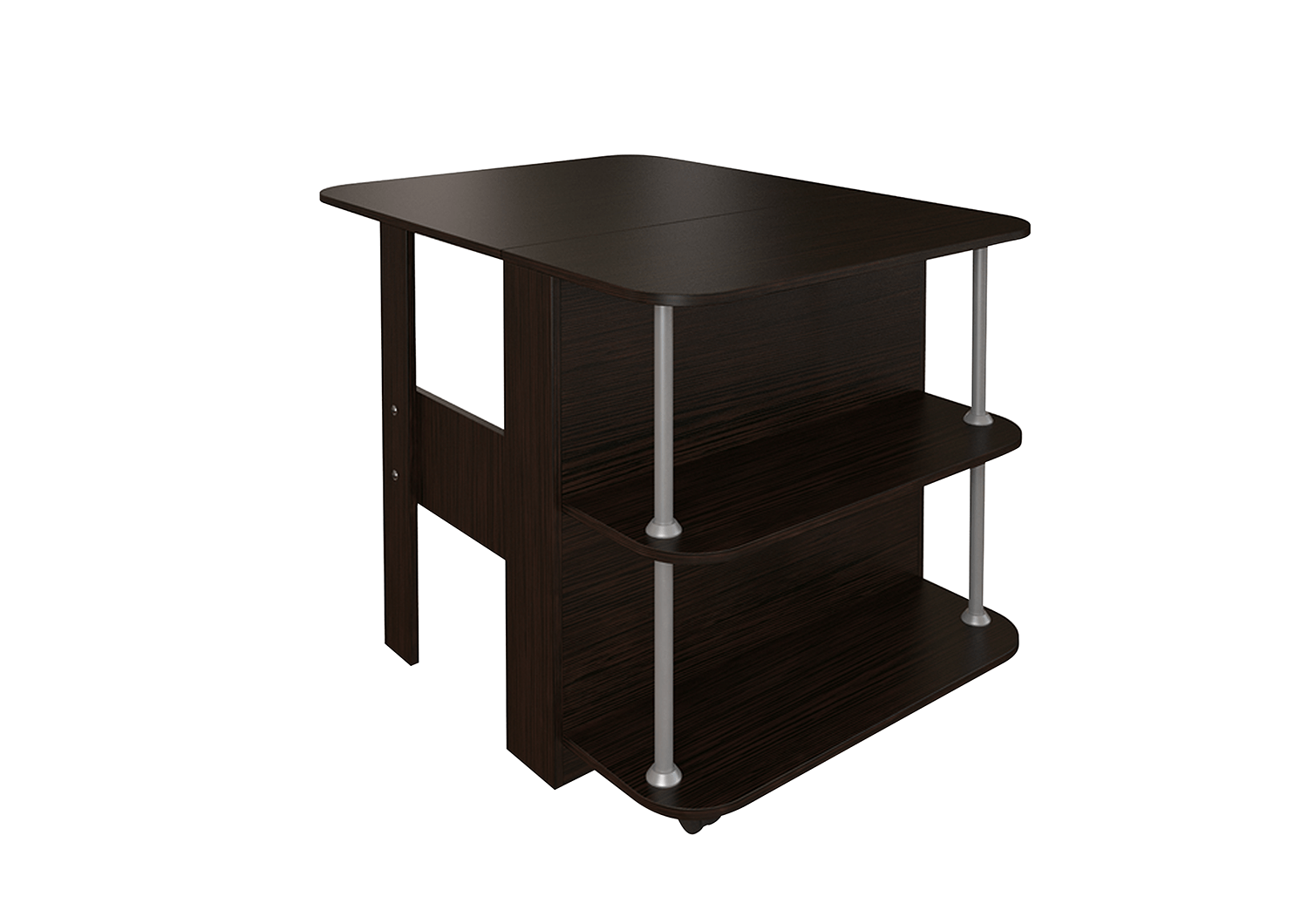 Стол-книжка «Бабочка» – компактный и функциональный.Этот стол способен занять достойное место в любом помещении. В сложенном виде он не просто занимает минимум места, но и может служить тумбой, а в разложенном виде за ним вполне комфортно может разместиться небольшая компания. Под столом имеются две небольшие полки, которые можно использовать для хранения различных вещей и предметов интерьера.