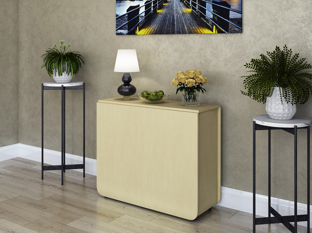 Комфорт, удобство в использовании, легкость в перемещении, компактность и функциональность.Стол складной «Сити» изготовлен из практичного и высококачественного материала. Столешница по периметру оклеена прочной кромкой. Грани столешницы закруглены и не доставляют неудобства при эксплуатации.Всего несколько секунд – и из компактного складного столика он превратится в просторный обеденный стол, за которым легко поместится вся семья.Данную модель можно использовать как тумбу, как небольшой столик для двоих и в качестве полноценного обеденного стола для большой компании.Качество изготовления, современный дизайн, аккуратный вид – то, что выделяет стол складной «Сити».