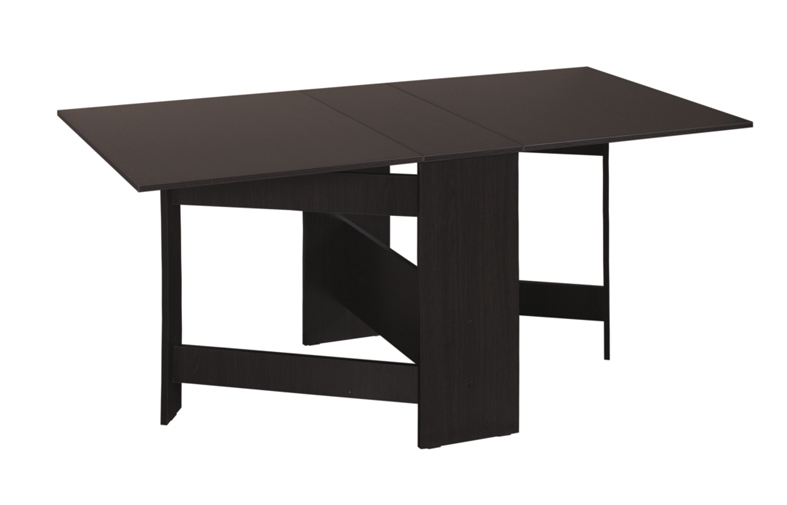 Красивый стол-тумба М02 – настоящая мечта любой хозяйки, рационально использующей полезную площадь в своём доме. Он состоит из устойчивых ножек-опор, корпуса и складной столешницы из трёх элементов. В сложенном виде стол занимает очень мало места, поэтому идеально подходит для небольшого жилого помещения. Тёмная расцветка изделия идеально подчёркивает стильный дизайн и вносит свои штрихи в оформление внутреннего пространства комнаты. Для защиты напольного покрытия от повреждений стол оснащается пластиковыми подпятниками.