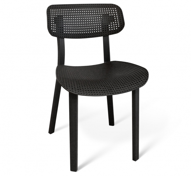 Перфорация спинки и сидения обеспечивает легкость конструкции, придает эффектный внешний вид и не боится длительного воздействия воды, позволяя использовать на улице.