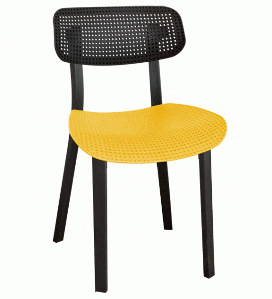 Перфорация спинки и сидения обеспечивает легкость конструкции, придает эффектный внешний вид и не боится длительного воздействия воды, позволяя использовать на улице.