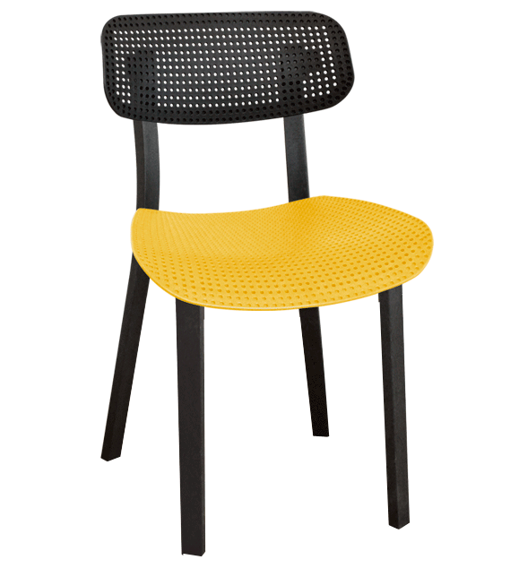 Перфорация спинки и сидения обеспечивает легкость конструкции, придает эффектный внешний вид и не боится длительного воздействия воды, позволяя использовать на улице.