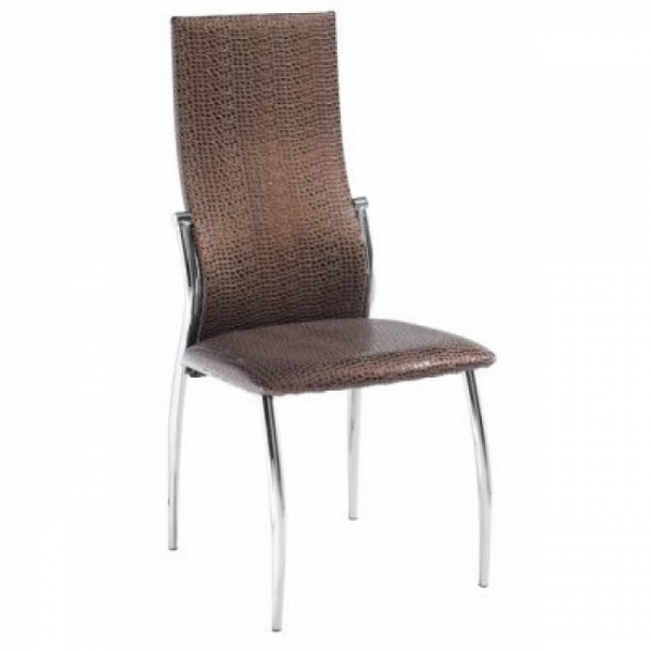 Стул на хромированном металлокаркасе. Спинка и сиденье отделаны искусственной кожей повышенной прочности. Стулья имеют очень удобную спинку, легко моются и чистятся, незаменимы на кухне и в столовой.