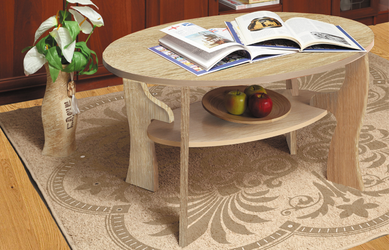 Изящный журнальный столик "Маджеста-4", состоящий из овальной столешницы, полки для книг такой же формы и четырёх изогнутых ножек. Модель отличается функциональностью и надёжностью благодаря грамотно продуманной конструкции и использованию современных материалов в изготовлении. Столешница и ножки выполнены в однотонном цвете.