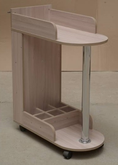 Столик барный - демократичное по цене средство создания ощущения обстановки ресторана. Это скорее практичный, нежели стильный предмет. В этом столике все предусмотрено для того, чтобы пользоваться им было удобно и безопасно. Ограничители на столешнице не дадут предметам сервировки съехать с нее при движении. Тоже относится и к вместительной нижней полочке, дополненной специальными держателями для бутылок. Столик оснащен удобной ручкой для передвижения и колесами, которые имеют плавный, бесшумный, легкий ход. С этим столиком вы сможете за считанные минуты преобразить гостиную в столовую, просто подкатив его к дивану со всем необходимым для легкого перекуса у телевизора.