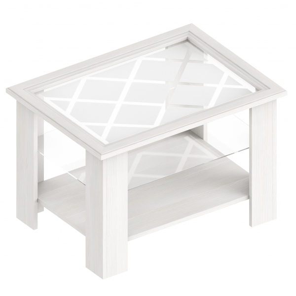 Журнальный стол – Александрия добавит комфорта в Ваш интерьер дома, квартиры, дачи, бара, кафе, ресторана, гостиницы, загородного дома и остальных зон отдыха. Этот предмет мебели послужит прекрасным прикроватным, приставным столиком. Так же в качестве винного или кофейного столика. Используйте стол в качестве подставки под цветы, в гостиной, в спальне, в холе. Выполнен из ЛДСП. Столешница выполнена из стекла с пескоструйной обработкой с окантовкой из МДФ. Также имеется стеклянная полка.