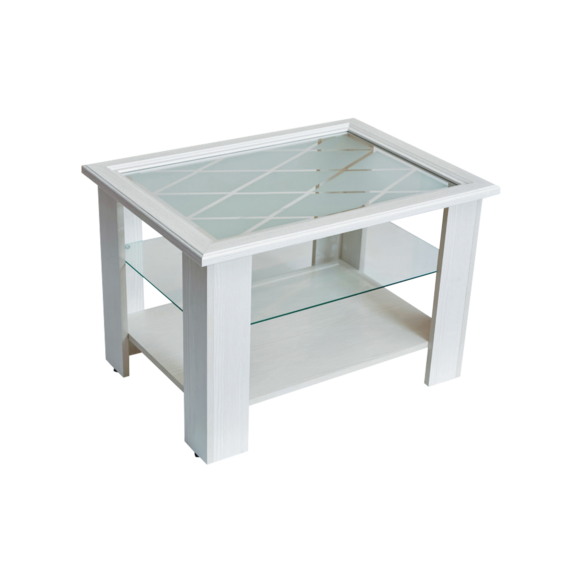 Журнальный стол – Александрия добавит комфорта в Ваш интерьер дома, квартиры, дачи, бара, кафе, ресторана, гостиницы, загородного дома и остальных зон отдыха. Этот предмет мебели послужит прекрасным прикроватным, приставным столиком. Так же в качестве винного или кофейного столика. Используйте стол в качестве подставки под цветы, в гостиной, в спальне, в холе. Выполнен из ЛДСП. Столешница выполнена из стекла с пескоструйной обработкой с окантовкой из МДФ. Также имеется стеклянная полка.