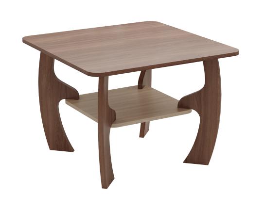 Очень компактный журнальный столик "Маджеста-5", способный дополнить интерьер практически любой гостиной. Его квадратная столешница со скруглёнными углами хорошо гармонирует с небольшой полочкой и плоскими фигурными ножками. Все детали изготавливаются из ДСП, их поверхность имитирует массив натурального дерева. Благодаря оригинальному сочетанию расцветок и красивой фактуре поверхности, столик смотрится современно и привлекательно.