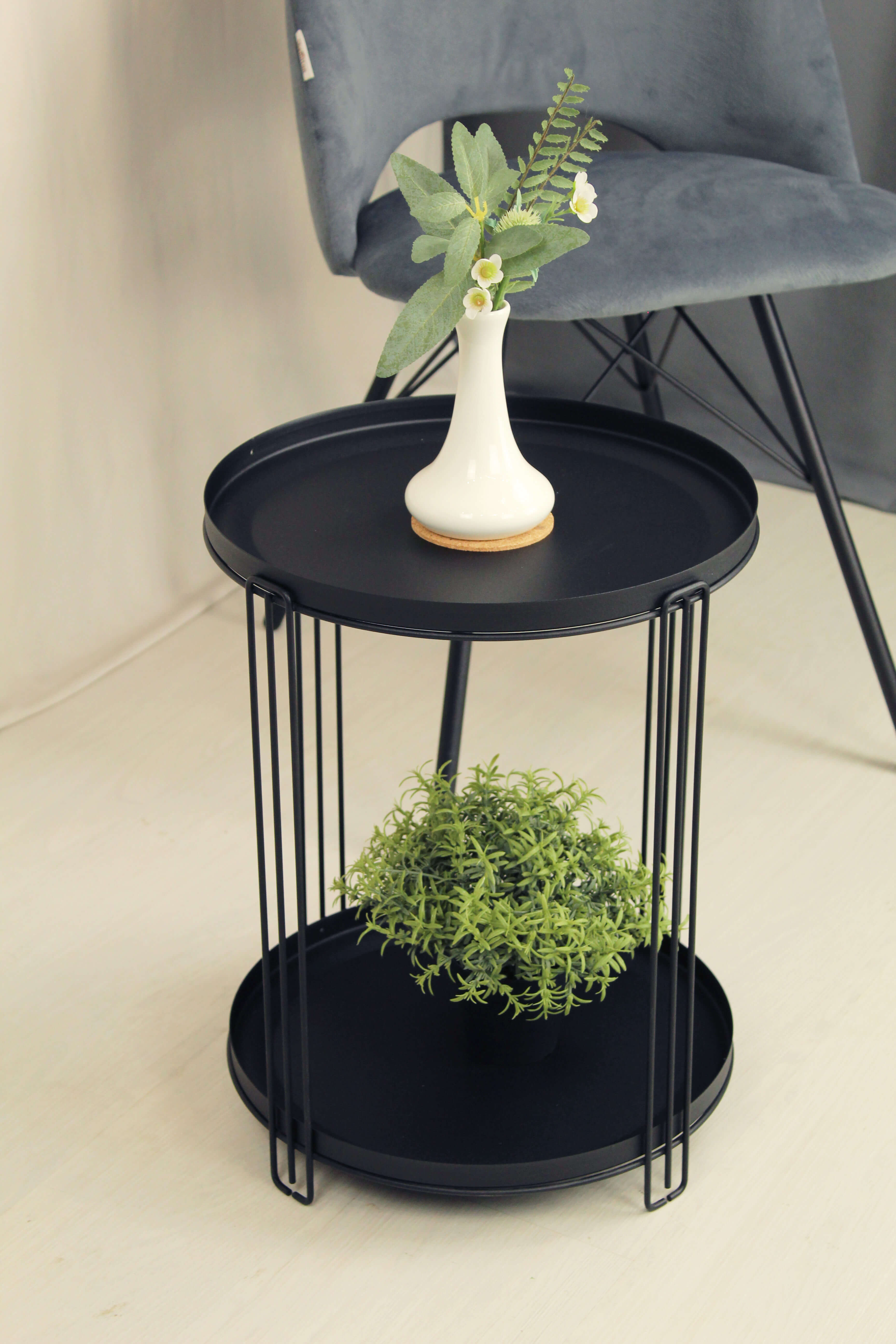 Замечательный столик  SHT-CT31 сделает дополнительный дизайнерский акцент в гостиной, спальне или кабинете.Надежный металлический каркас окрашен порошковой краской, устойчивой к механическому воздействию. Выполнен из прутка диаметром 4,5 мм.